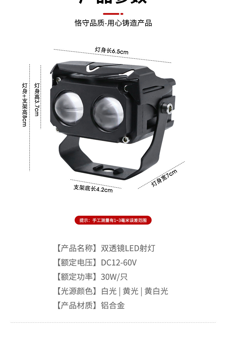 平台首页 > 车身及驾驶室 > 带罩双珠炮摩托车射灯汽车LED中网小钢炮双色透镜电动大灯改装灯 1只
